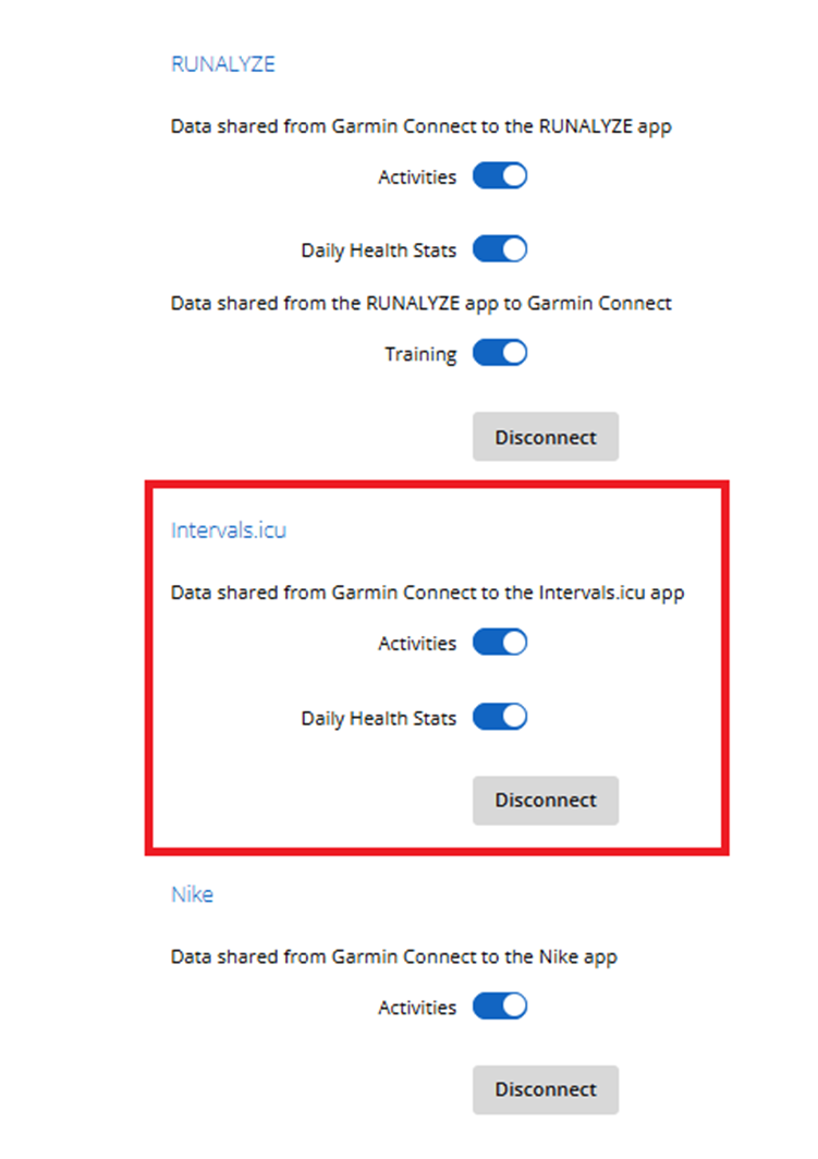 - Find Intervals.icu in the connected apps section