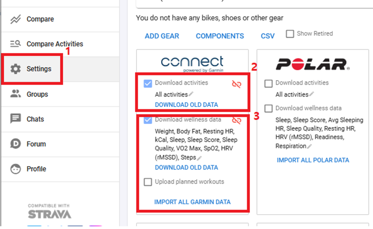 - Also check the Download wellness data box to sync wellness metrics (Weight, Body Fat, Resting HR, Sleep, HRV, VO2 Max, SpO2, Steps, etc.)